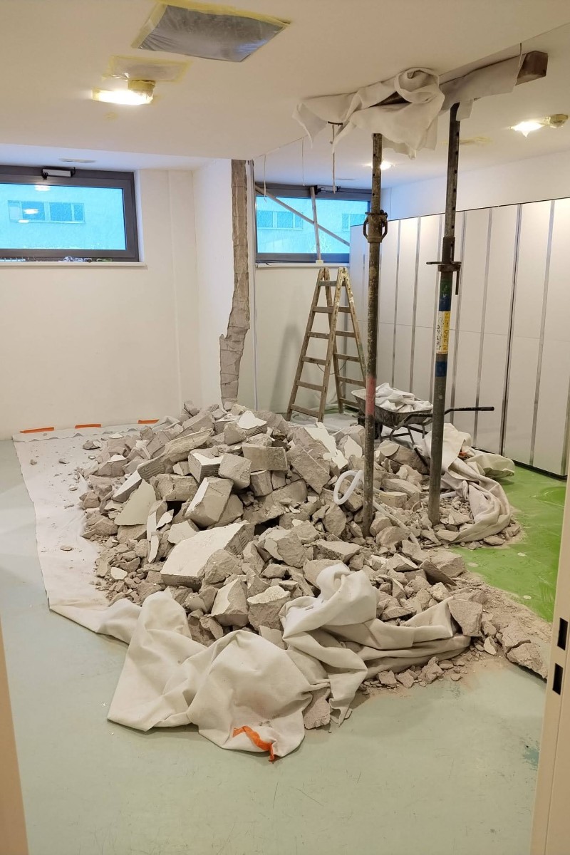 Naše partnerství s florbalovým klubem Tatran Střešovice nemá jen symbolickou podobu, ale snažíme se stavět vzájemnou spolupráci na uchopitelných reálných aktivitách. Když nás tedy Tatraňáci požádali o pomoc s rozšířením klubových šaten, rádi jsme jim vyhověli. Ze dvou šaten vznikl vybouráním středové příčky komfortní prostor pro ideální zázemí hráčů.