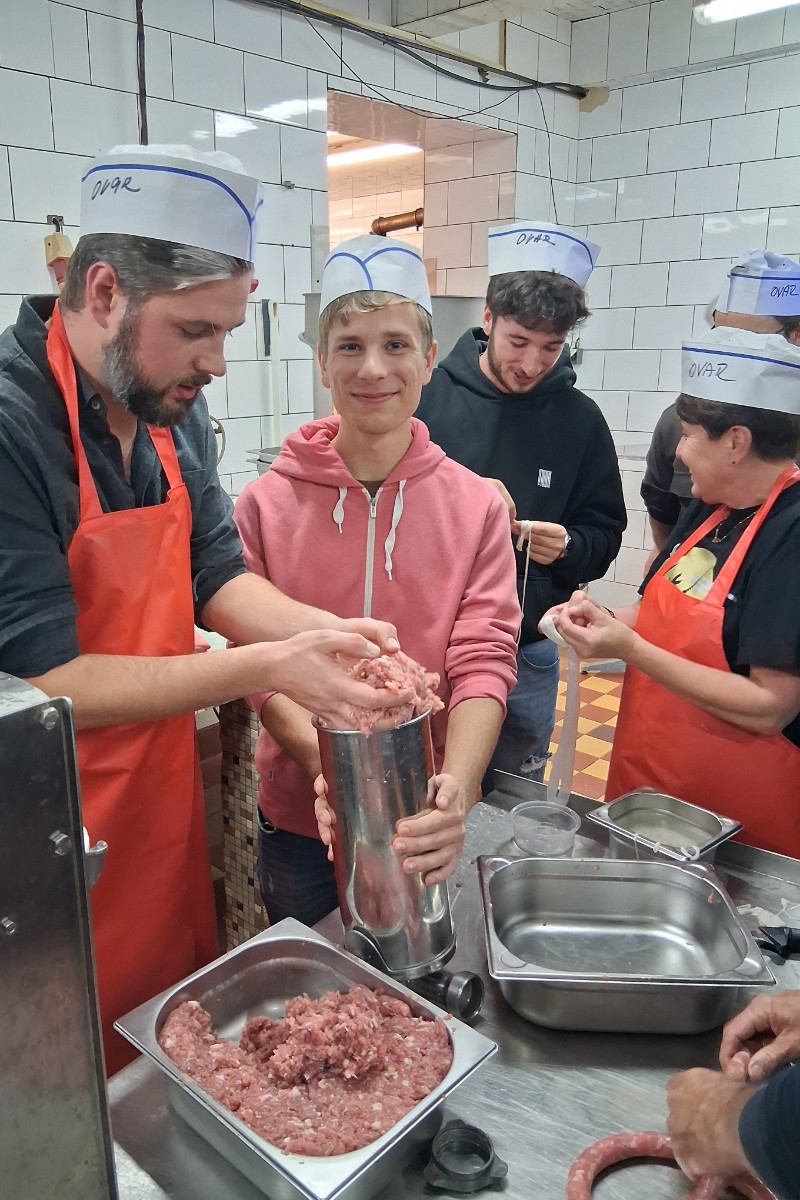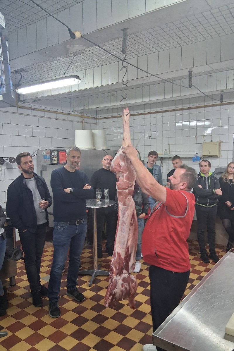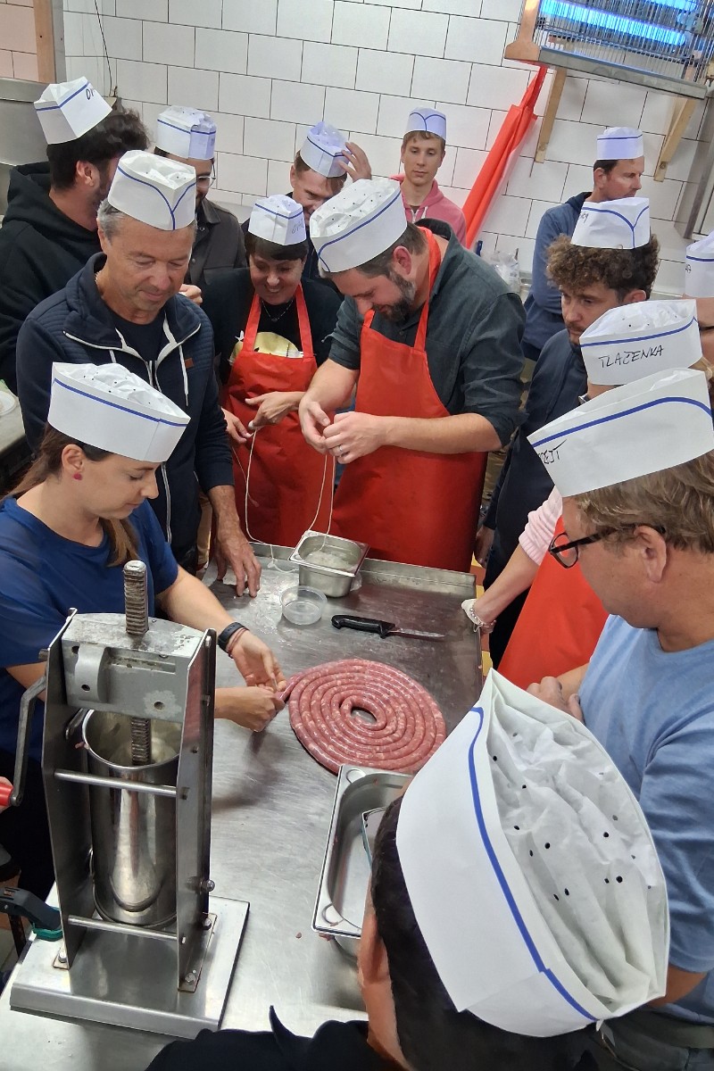Dva říjnové čtvrtky jsme na čas změnili naše pracovní týmy, odložili typické stavařské atributy, zavázali zástěry, oblékli potravinářské čepice a spolu s kolegy se ponořili do tajů řeznického řemesla.