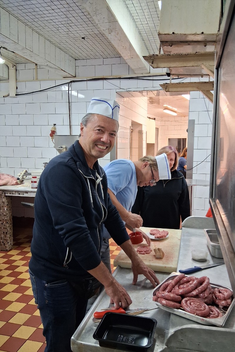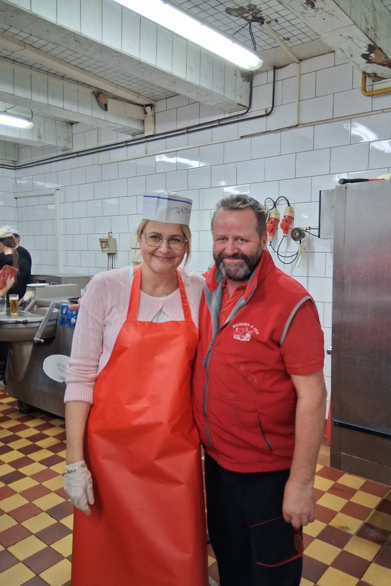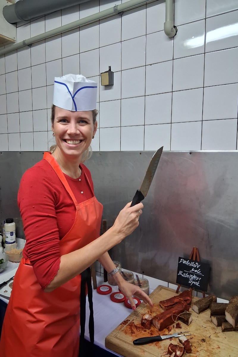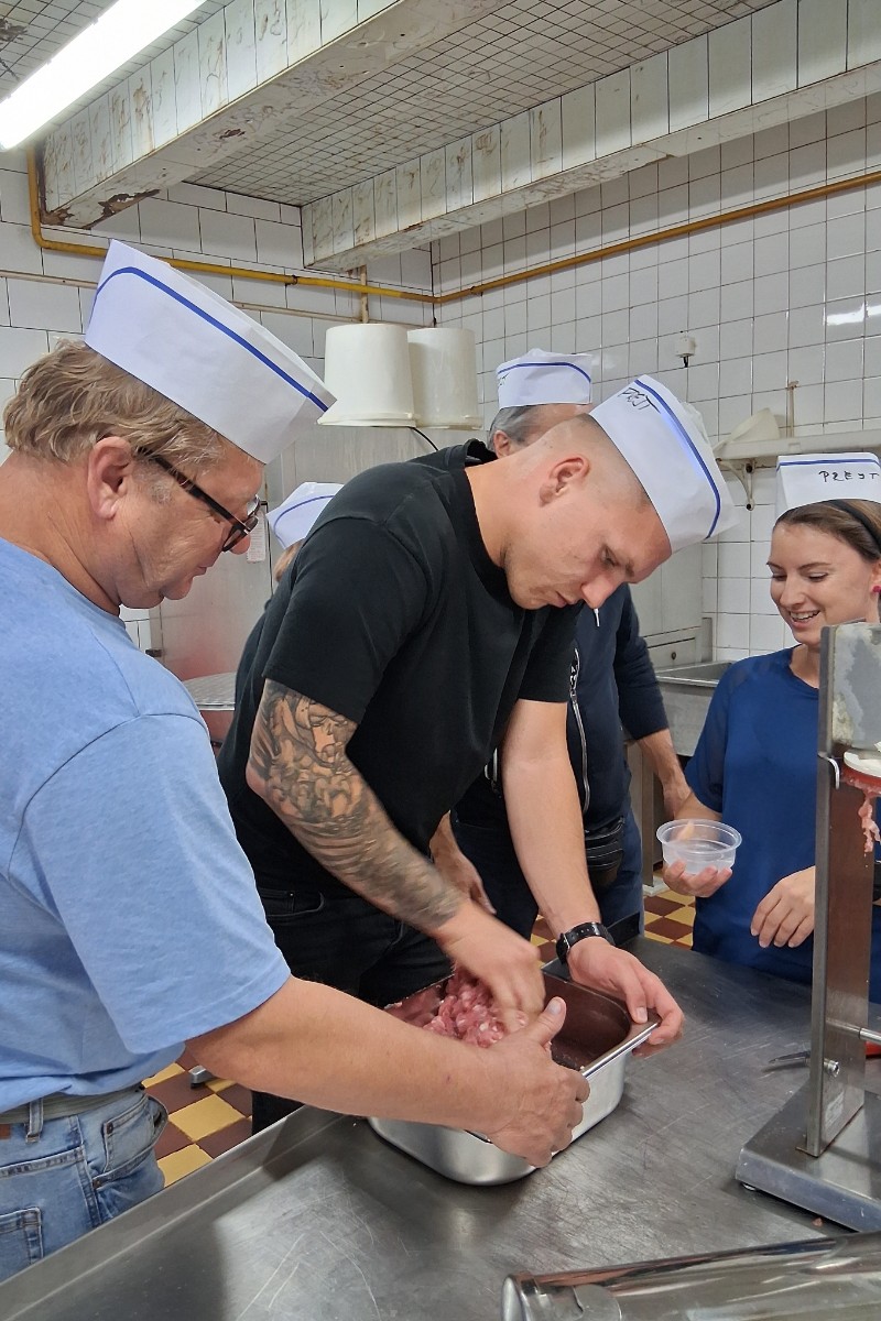 Dva říjnové čtvrtky jsme na čas změnili naše pracovní týmy, odložili typické stavařské atributy, zavázali zástěry, oblékli potravinářské čepice a spolu s kolegy se ponořili do tajů řeznického řemesla.