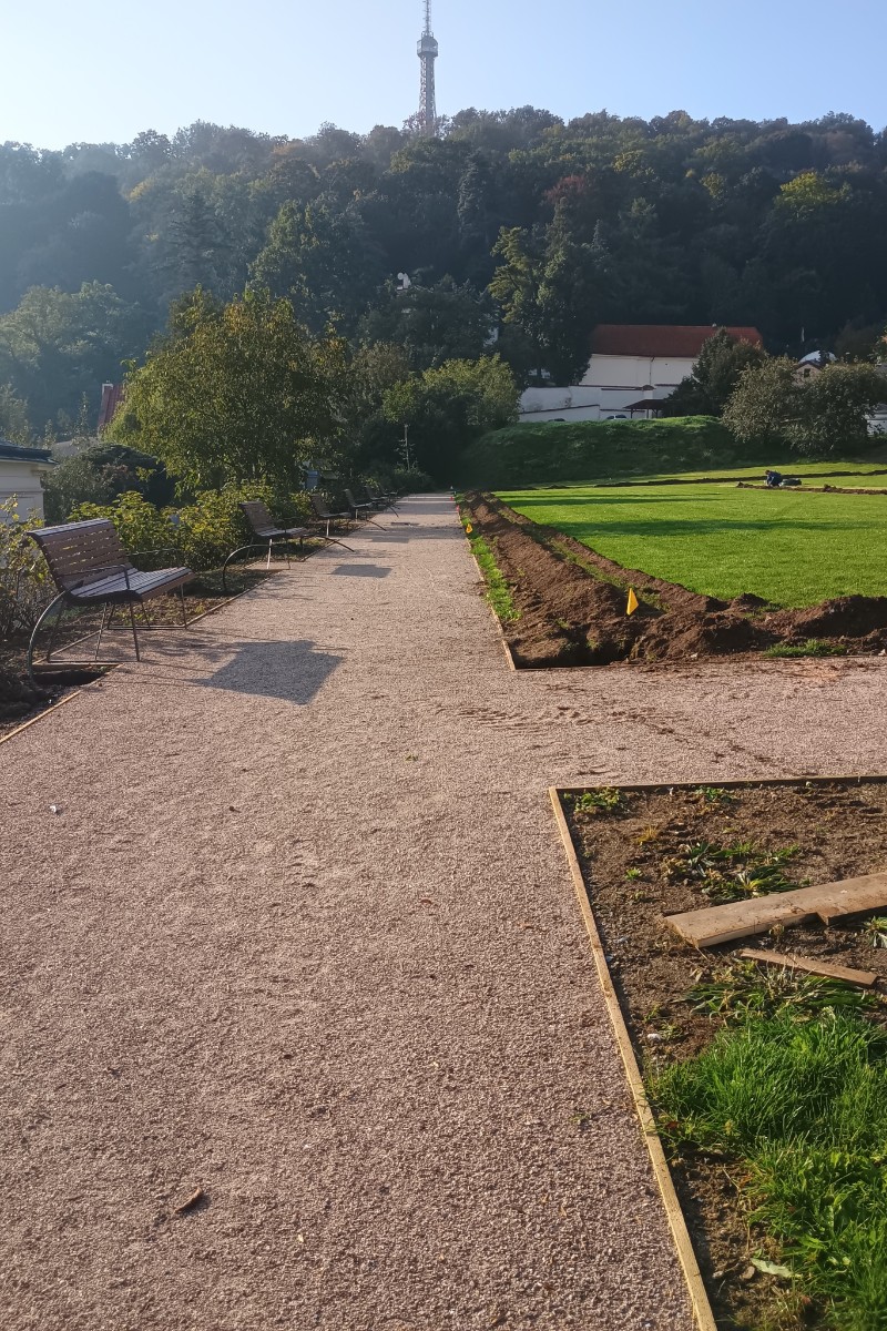 Pracujeme na rozšíření a parkových úpravách zahrady při Nemocnici milosrdných sester svatého Karla Boromejského v Praze.