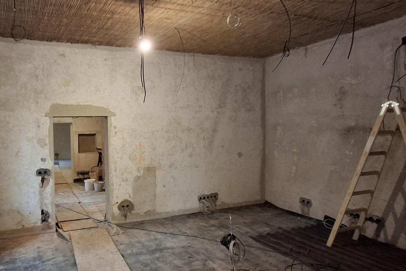 Stavební práce pokračují v interiéru a zahájeny byly také výkopové práce pro přípojky a kanalizaci.