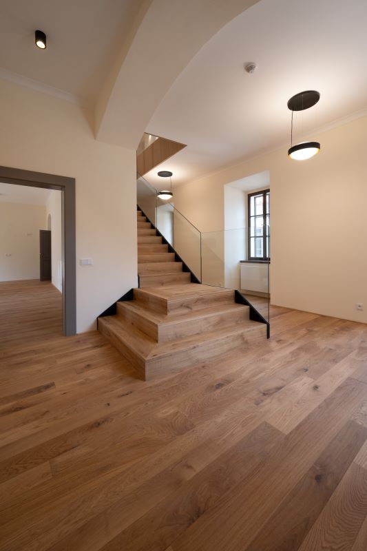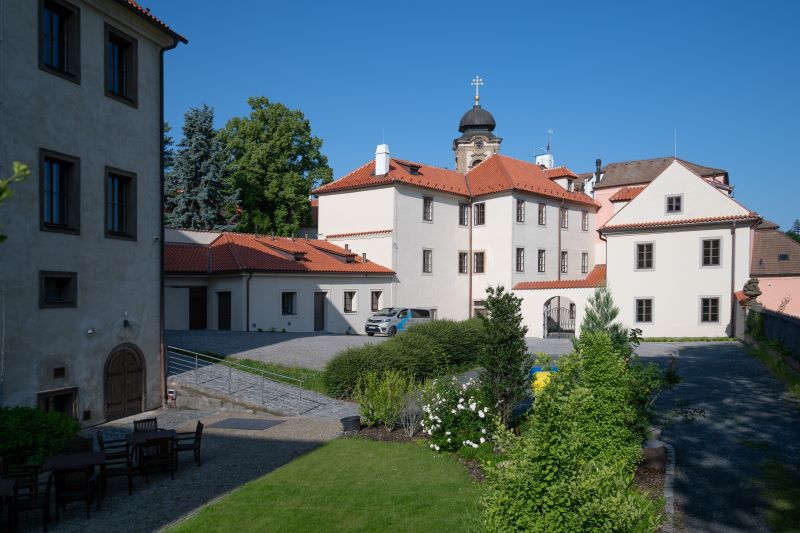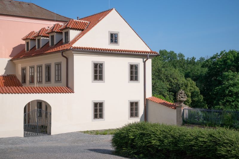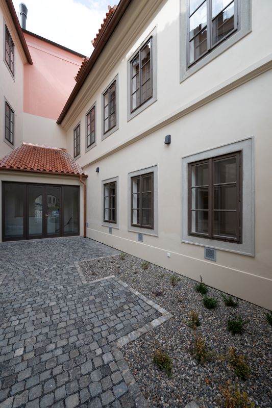 Cílem obnovy dvou sloučených domů v areálu Martinického paláce bylo navrácení původní funkce bydlení spolu s revitalizací zahradního parteru.