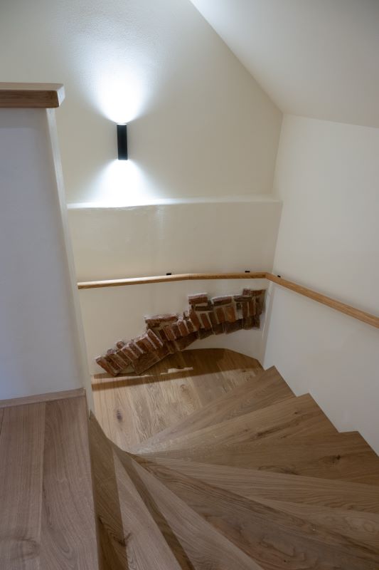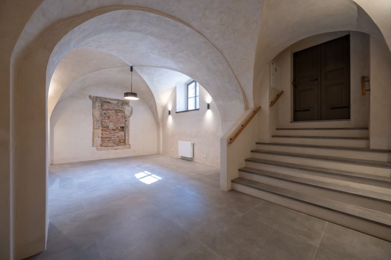 Kompletně nové jsou vnitřní konstrukce a vybavení a také instalace, pro jejichž rozvody byly maximálně využity původní drážky a prostupy. Nově byl osazen výtah v prosklené šachtě, což si vyžádalo konstrukční zásah do původní klenby. Realizovány byly také vnitřní i vnější omítky. Část původních povrchů bylo nutné restaurátorsky zakonzervovat s ohledem na zachovalé fragmenty renesančních omítek. Součástí dodávky byly i kamenické nebo truhlářské práce. Odborně repasováno bylo například kamenné točité schodiště či truhlářské prvky.